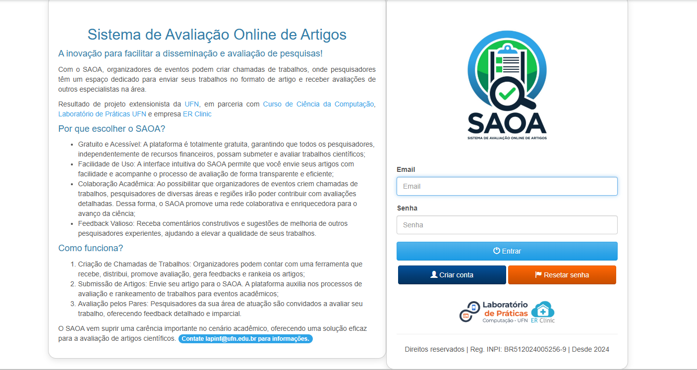Um sistema onde organizadores de eventos podem criar chamadas de trabalhos e pesquisadores enviam artigos para avaliação.